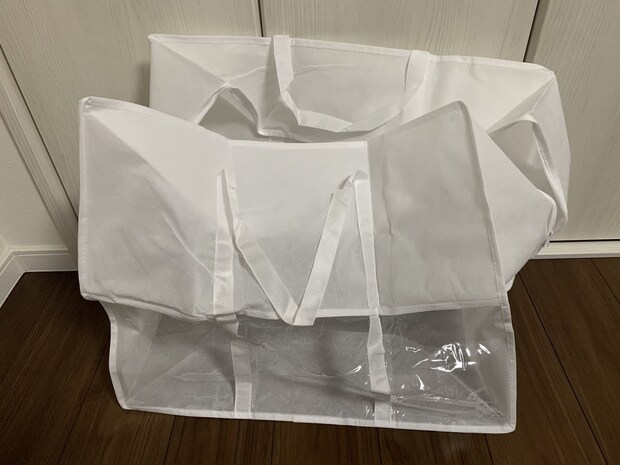 さらに、バッグ下部が透明になっており、中身を一目で確認できる点や、両サイドに付いたハンドルで、重い布団類が入っていても楽に持ち運べる点も、この商品の大きな魅力です。