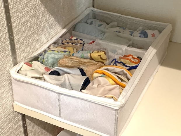例えば、お子様の肌着、靴下、保育園で使うスタイなどを分けて収納すれば、どこに何があるか一目で分かり、朝の準備もスムーズに進むでしょう。
