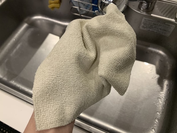 一枚の大きさは手のひらサイズ。大きな水たまりには小さいかもしれませんが、キッチン周りの水滴などをサッと拭くには、これ以上ないほど最適な大きさです。