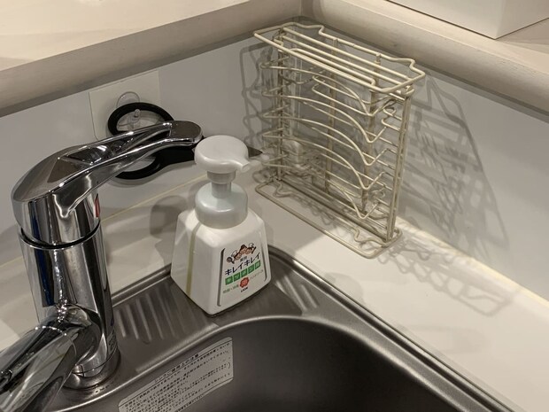 使用しない際は、コンパクトに折りたたんで収納可能。手狭になりがちなキッチンでも、調理スペースを圧迫することなく、シンク横などのわずかな隙間にすっきりと保管できます。