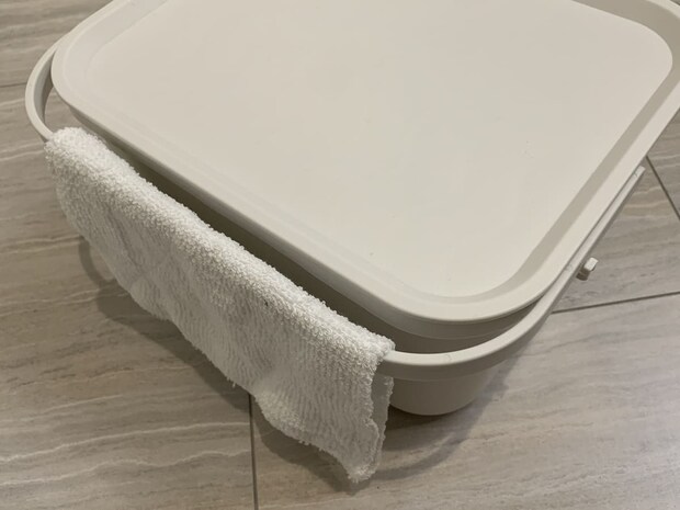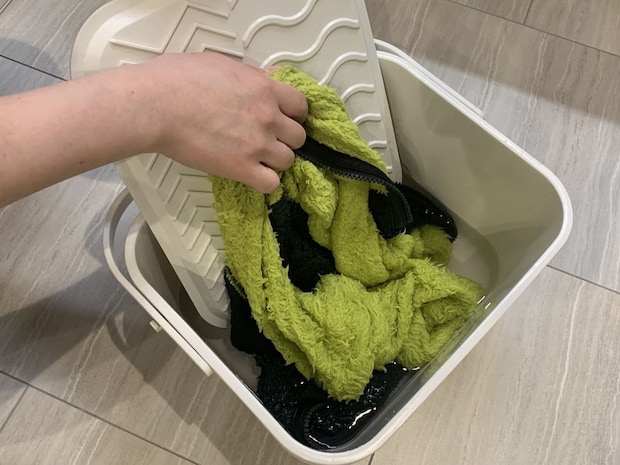 また、水を溜めて、靴や衣類のつけ置き洗いにも使えます。最後に、持ち手部分は雑巾などを掛けて乾かせるよう設計されています。