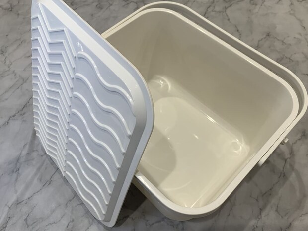 商品は、蓋、ザル、容器の3つのパーツで構成されており、落ち着いたアイボリーカラーも魅力です。