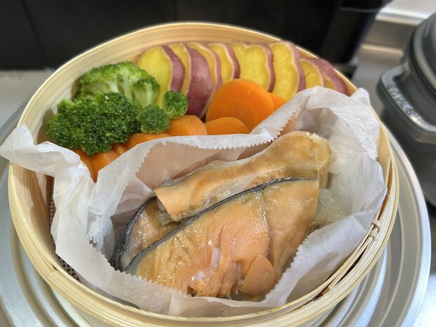 実際に野菜を蒸すと、素材本来の風味と甘みが際立ち、短時間でほっくりと仕上がります。鮭と野菜の同時調理や、冷凍マフィンやオムレツ風のココットを使った「せいろモーニング」も手軽に作れ、食卓が華やかに。