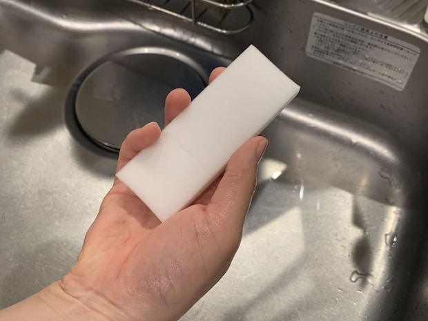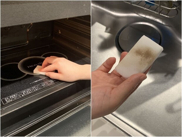 メラミンスポンジなので、洗剤なしでも電子レンジの庫内のような汚れをしっかり落とせます。