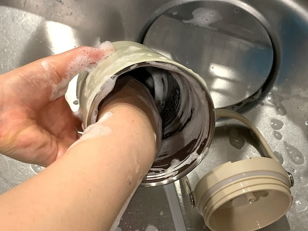 注ぎ口が広いので、氷を入れるのも、底まで洗うのも簡単。結露しにくい二重構造で、保冷性も十分です。