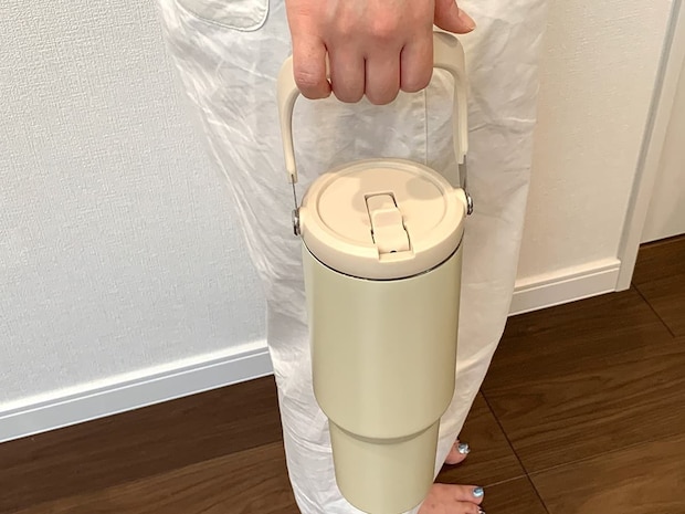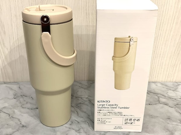 1.15Lという大容量を誇る「大容量ステンレスタンブラー」は、屋外作業やスポーツなど、水分補給が欠かせないシーンで活躍します。落ち着いたベージュとグレーの2色展開です。