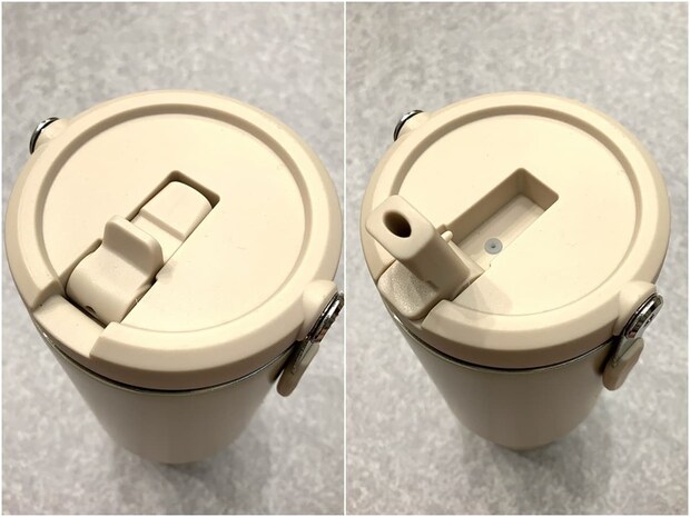 最大の特徴は、傾けずに飲める便利なストロー付きの蓋。移動中や子供でもこぼしにくく、手軽に水分補給ができます。