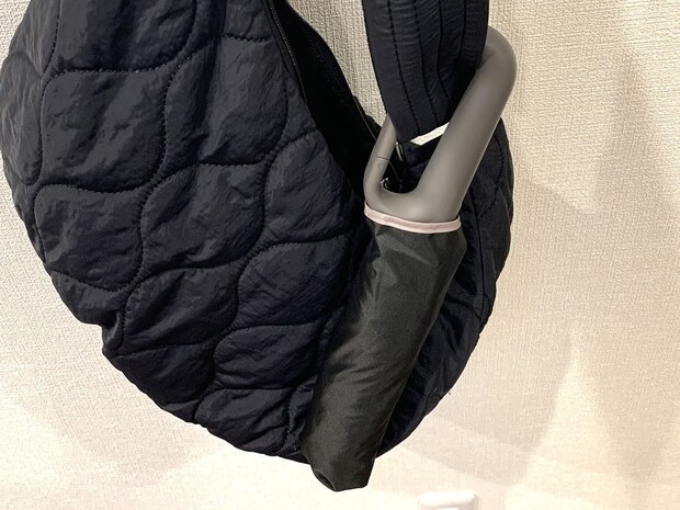 次に、持ち手が大きなカラビナになっている点も大きな魅力。バッグやリュックに簡単に取り付けられるため、必要な時にすぐ取り出せます。