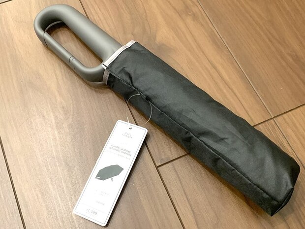 不意の雨への備えとして便利なのが、「持ち手カラビナ自動開閉折り畳み傘」です。
