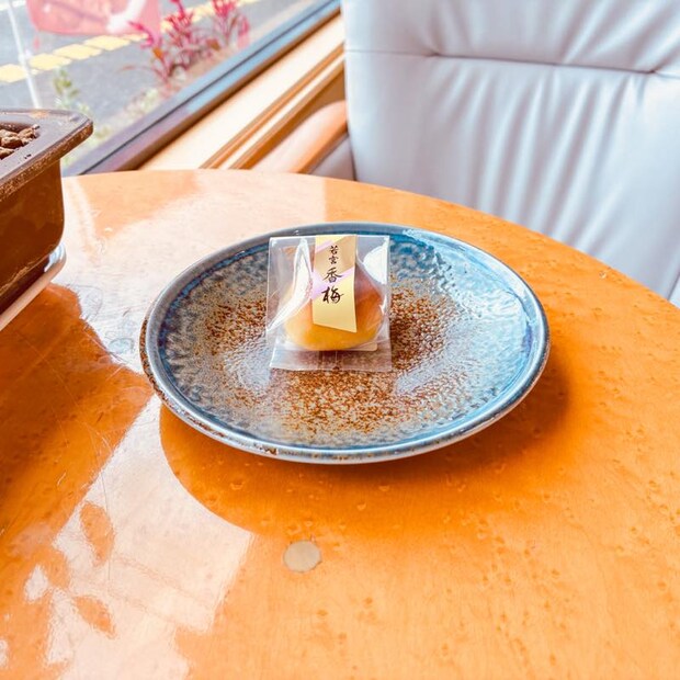口にすると、白あんがベースの生地から感じる柑橘系の上品な風味と、たっぷりの蜜に漬けこまれた梅の甘酸っぱさがたまりません。