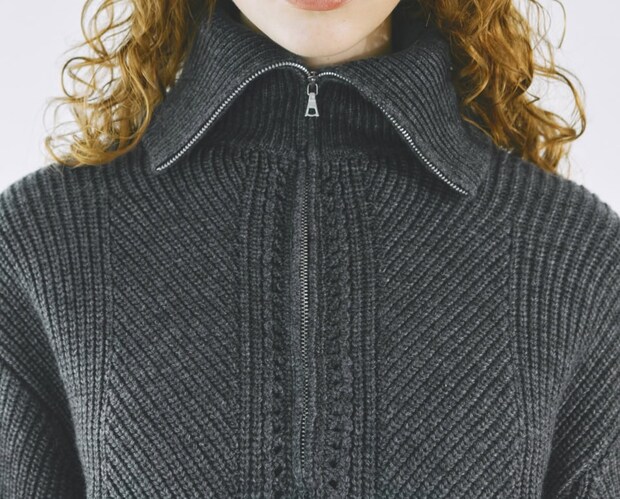 首元まできゅっとジップを上げたり、ジップの使い方で印象が変わります。