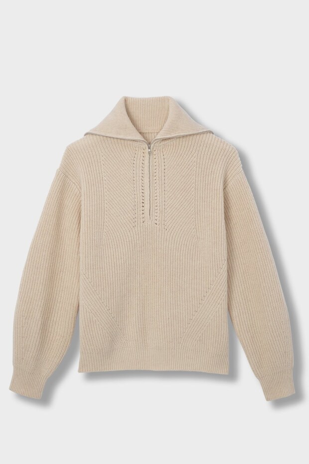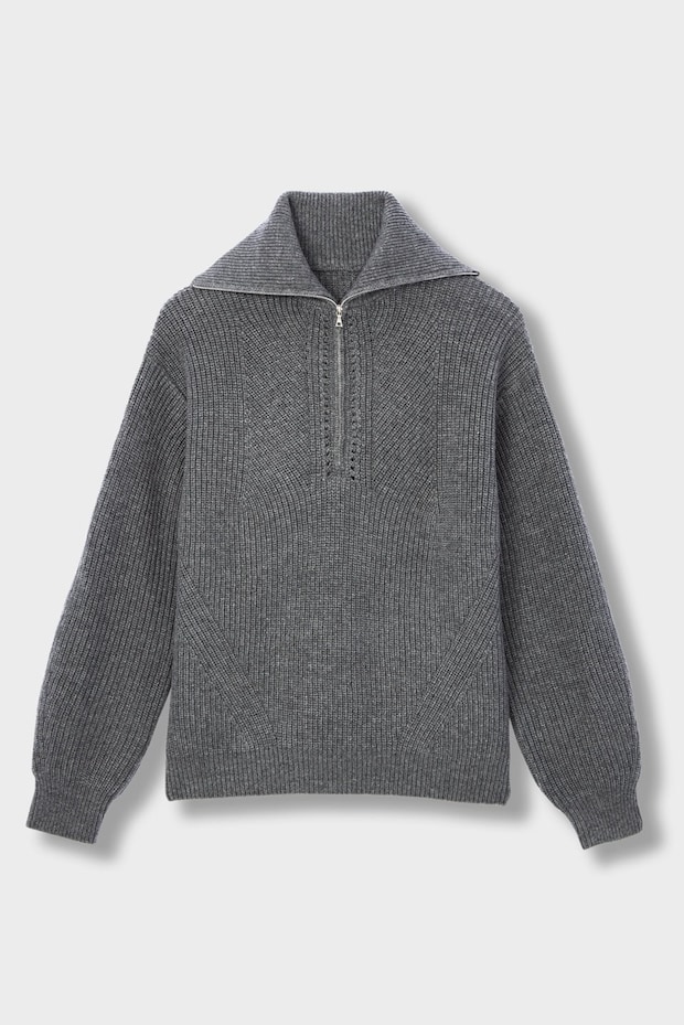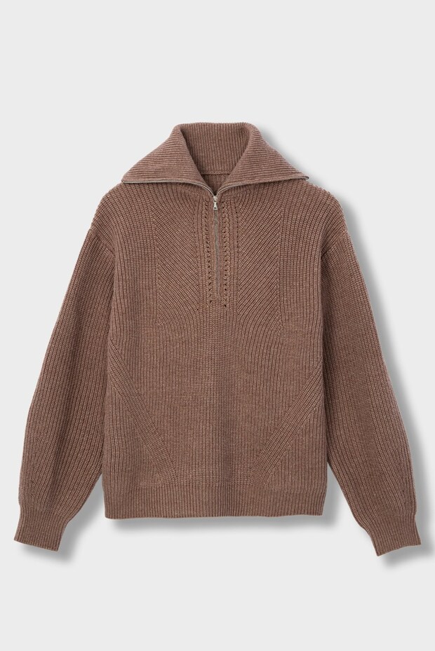 ブランドディレクターの女優の佐々木希さんが肌ざわりにこだわりがあるそうで、とにかく柔らかくリラクシーな着心地になるよう仕上げられたというニットシリーズ。アクリル、ナイロン、ウールの混合素材でホームケアが可能。今季のトレンドでもあるハーフジップニットは、フロントジップの締め具合でスタンドカラーにしたり、大きく開けて衿を折り返しても着用でき、着まわししやすいはず。同素材のパンツと組み合わせてセットアップにするのも可愛いですよね。締め付け感がなく、ラクな着心地で年末年始の帰省や旅行にもオススメしたいセットアップです。