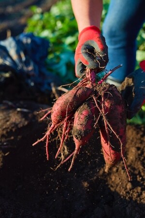 パフェに使用している金蜜芋は、石田農園が手がける特別なさつまいも。ねっとりと濃厚な甘みと香ばしい香り、そして最高糖度75度という驚きの甘さが魅力で、土づくりから熟成まで二年もの歳月をかけ、独自の栽培法で育まれている。