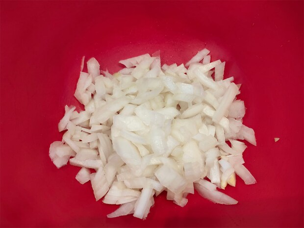 1. 玉ねぎを粗みじん切りにする。しめじは小房に分け、エリンギは手で裂く。