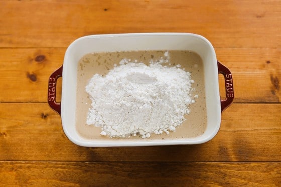 2. ドライイーストと1/2量の強力粉を加え混ぜる。