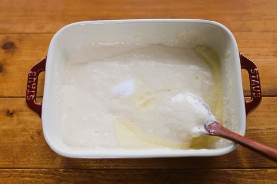パン作り初心者の方や丸めるのが難しい方は、そのままスプーンの背で生地を容器全体に広げます。書籍では丸くする成形方法についても動画で詳しく解説していますので、是非参考にしてみてくださいね。