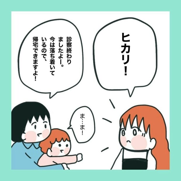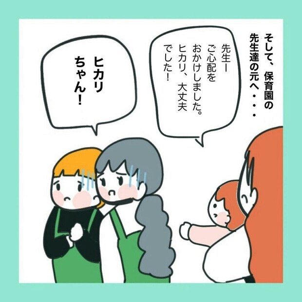 症状が落ち着き、自宅へ帰れることとなったヒカリちゃん。そして、一緒に心配してくれていた保育士さんの元へ行くと、ヒカリちゃんが元気になったことを喜んでくれました。