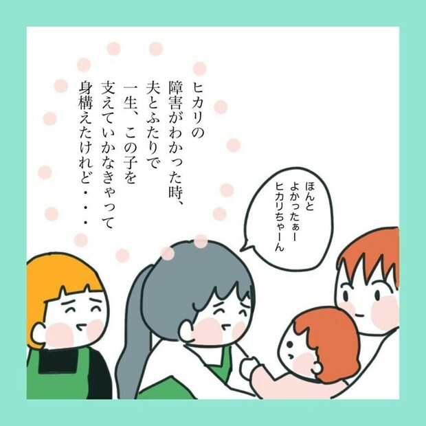 娘の障害がわかったとき、覚悟を決めたサチさん夫婦。ですが周りの人たちに助けられたおかげで、肩の力を抜くことができました。