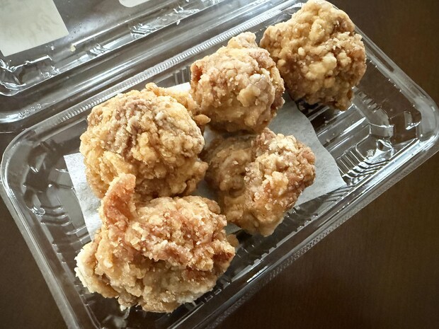 こちらは大で中には唐揚げが5個入っていますが、パッケージ越しにみても唐揚げのサイズがかなり大きいことがわかります。