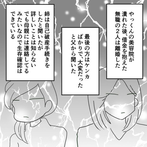 独立という夢を描いた元夫、靖は開業したもののうまくいかず、早々に廃業に追い込まれます。そしてキャリアウーマンとして経歴を積んできた姉もまた、略奪結婚の話が社内で広まってしまったことで居場所を失い退職に至ってしまうのでした。