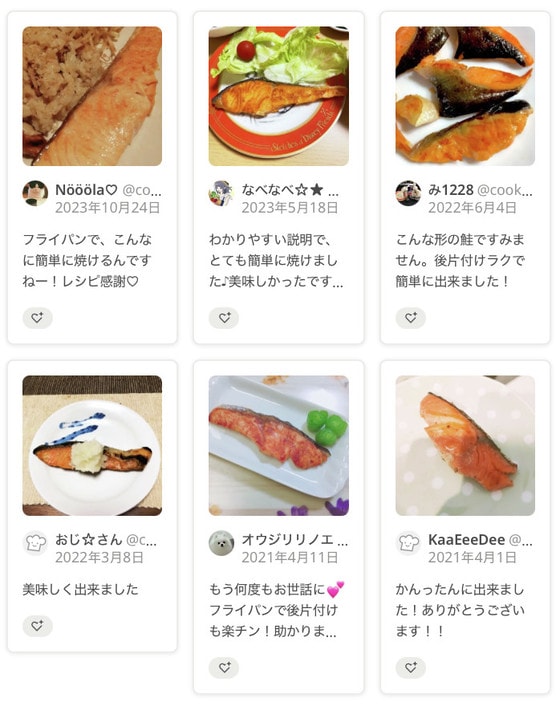 つくれぽ(つくりましたフォトレポートのこと)にも「後片付けも楽ちんで助かります」「しっとりおいしく焼けました」「フライパンで簡単に焼けて嬉しいです」などの声が届いています。
