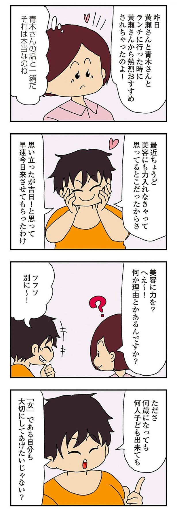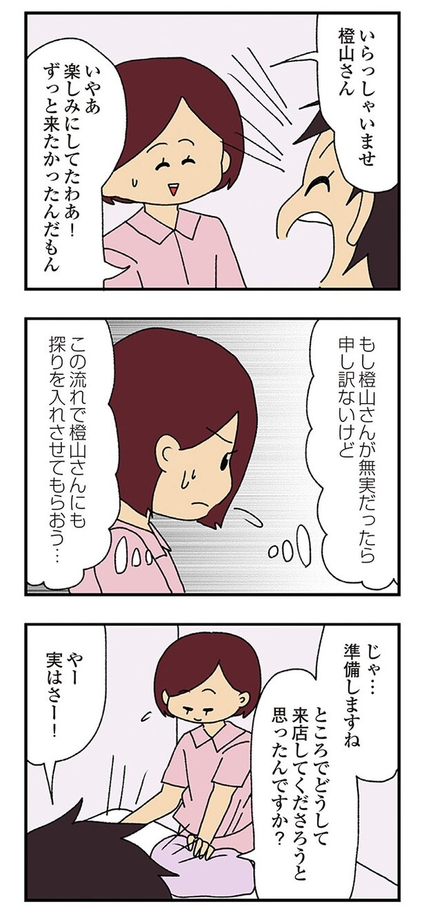 前回、夫との不倫を疑っているママ友のひとり、青木さんがなつめのサロンに来店した。すると青木さんから「不倫ってどう思います?」と挑発されるようなことを言われ、なつめは戸惑ってしまう。その後、不倫を疑っているもうひとりのママ友、橙山さんが来店し…。