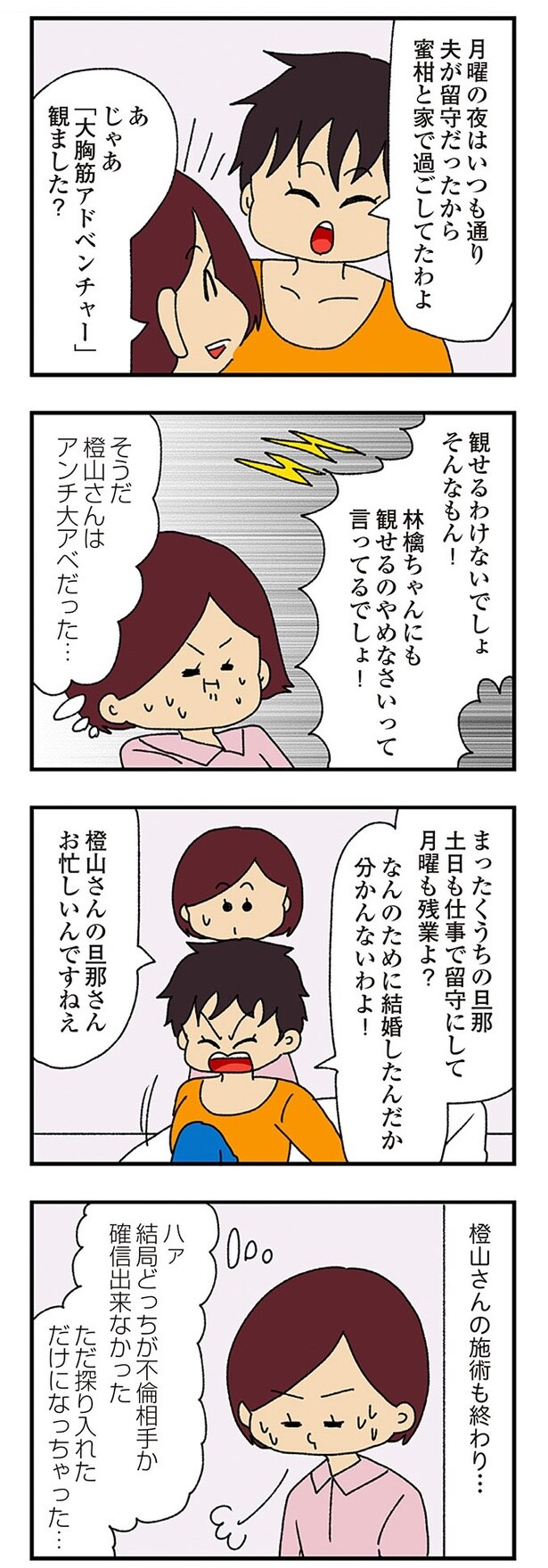 夫の不倫相手は誰?そして、その目的は?伏線だらけの不倫ミステリー「ママ友4人の誰かが夫と不倫している」 (漫画:ぱん田ぱん太)から全25回連載でお届け。今回は第25回目となる。