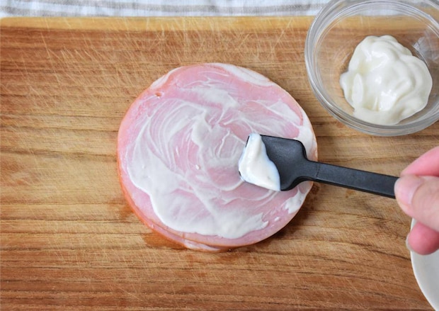 ハムにマヨネーズを薄く塗ります。