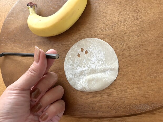 ふよふよ漂うのは、かわいいチョコバナナのおばけ。手軽につまめるサイズ感なので、大人数のパーティーにもぴったりです!