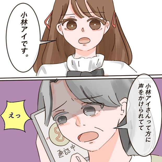 「小林アイです」女性の言葉を聞いて、「小林アイさんって肩に声をかけられてて」と言うと、「えっ」と夫が驚きました。