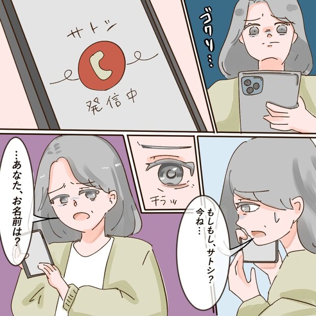 「もしもし、サトシ?今ね・・」と切り出した後、「・・あなた、お名前は?」とたずねると、
