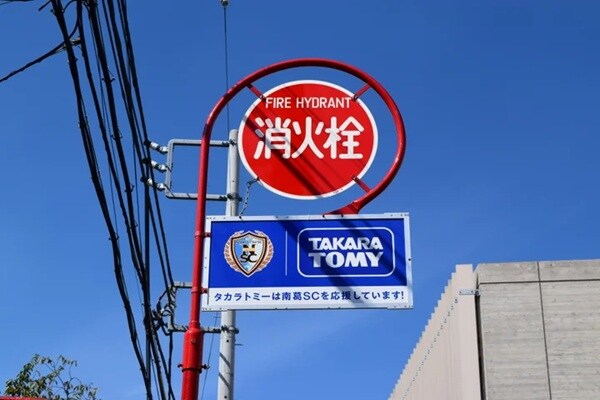 東京都中央区に本社を置く「消火栓標識」は9月26日(金)、サッカー漫画『キャプテン翼』の原作者・高橋陽一氏が代表を務めるサッカークラブ「南葛SC」を応援する広告看板を、地元の大手玩具メーカーである「タカラトミー」の提供により、京成立石駅周辺の消火栓標識に設置した。