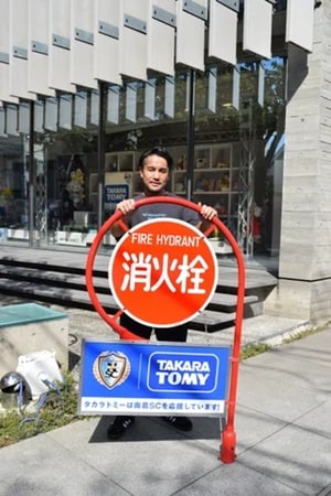 今回、「タカラトミー」は、サッカークラブ「南葛SC」応援広告を消火栓標識に設置。京成立石駅周辺に10カ所掲出しチームと地域防災を支援する。