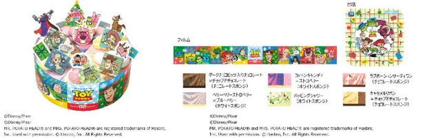 プレゼントのリボンをイメージしたホイップクリームでデコレーションし、カラフルなチョコレートのウッディやバズたちをトッピングした。イチゴの香りのするロッツォのピースは「コットンキャンディ」とストロベリーのフレーバーにするなど、キャラクターのイメージでアイスの味わいを選定している。