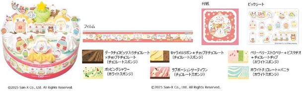 すみっコの世界観に合うようなふんわりとした色合いのデザインで、さまざまなピックで自由にデコレーションできる。それぞれのキャラクターのイメージに合わせた人気フレーバーをラインアップしている。フィルムと台紙はクリスマスらしいふんわりとした赤色で、ケーキのデザインが締まるように仕上げた。