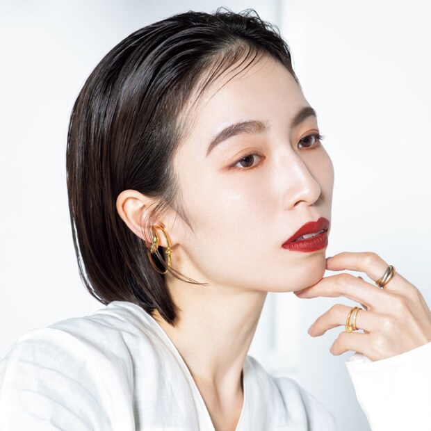 「メイクはまずその日の気分でリップカラーを決めて、それに合わせてアイシャドウのカラーを選ぶようにしています。今回は春夏を意識した、ぱきっとした色味のリップをチョイス。とはいえ、まだまだ寒い日が続くので、マットな質感で温かみもプラスしました」