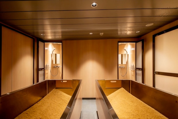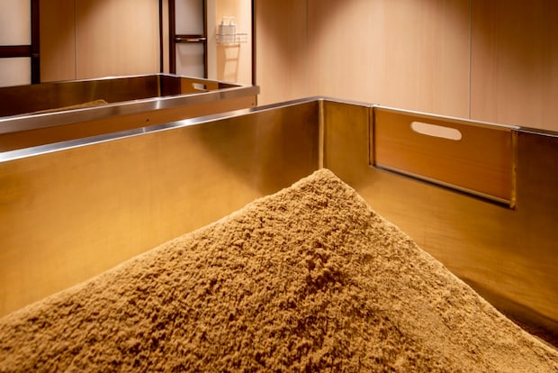 これが……なんともいえない心地よさ。想像していたより温度は高いのですが、からだ全体が温かなものに包まれていると、芯から温まるだけでなく邪念も払われるといいますか……汗をかきながらボーッと無の状態になれる、究極のリラックスタイム。ぽたぽたと全身から汗をかいていると、あっという間に15分。シャワーでオガクズをしっかり洗い流し、汗がひくまで館内着でゆったりリラックスします。
