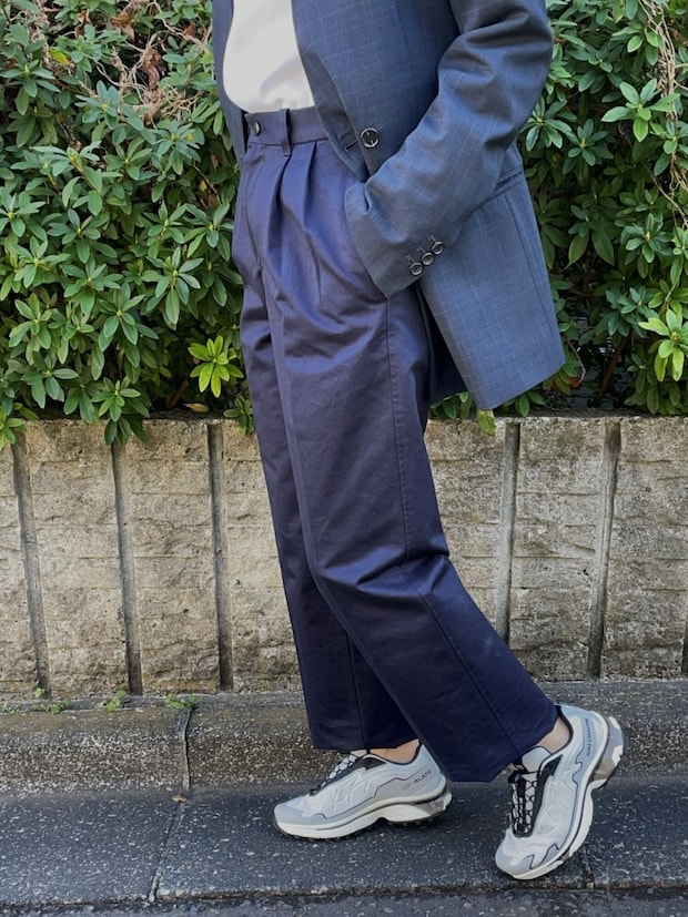 チノパン¥30,800(ブルックス ブラザーズ×ニートforユナイテッドアローズ&サンズ/ユナイテッドアローズ 原宿本店)、HOMME GIRLSのジャケット、OperaSPORTのスエット、Salomonのスニーカー、TOM WOODピアスは本人私物