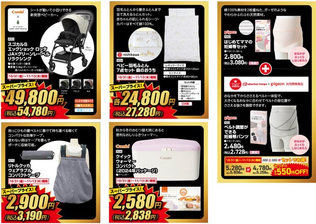出産準備用品や育児用品など、バイヤーが厳選したイチオシ商品を特別価格で販売します!要チェックですよ♪