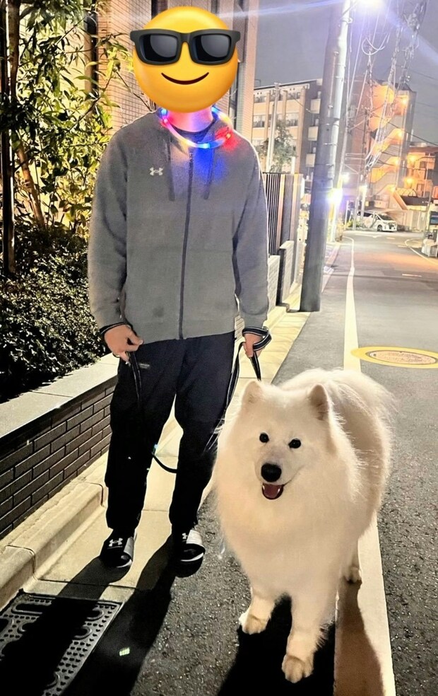 ご紹介するのはサモエドのダッツ(@samoyed_dazs)さんが投稿したある写真。最近、愛犬に光る首輪をつけて散歩をしている人を見かけませんか?夜のお散歩ではよく目立つため、重宝している飼い主さんが増えてきたように思います。見た目もインパクトがあって、かわいらしいですよね。しかし、中にはこの首輪を嫌がる愛犬もいるよう。そういうとき、この首輪は誰がつけるのでしょうか…。