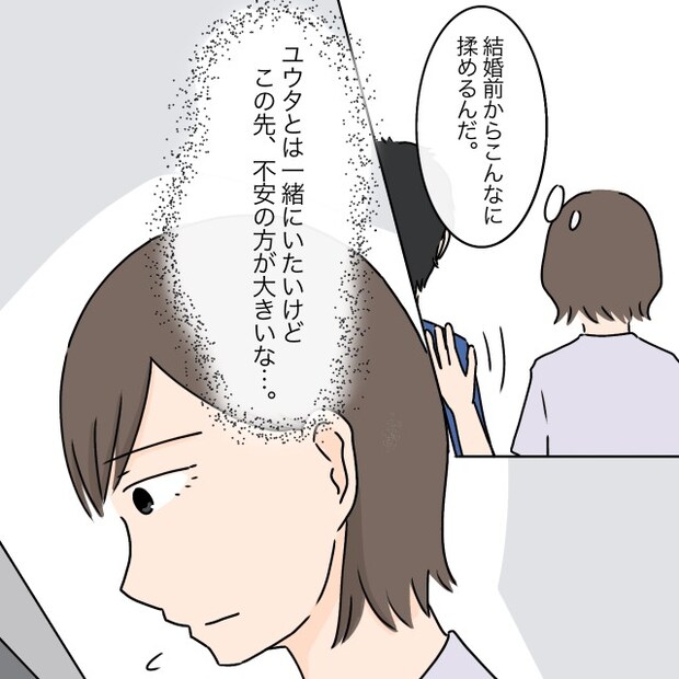 結婚前からこんなに揉めるんだ・・。夫には大丈夫と言ったものの、まだ結婚式も終わっていないのに、この時点でもう義母とうまくやっていける自信がありません。ユウタとは一緒にいたいけど、この先、不安の方が大きいな・・と不安が募りました。
