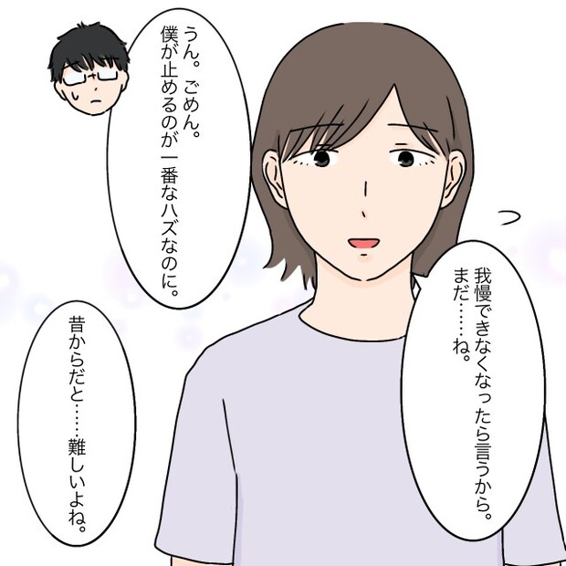 私は夫を心配させたくなくて「我慢できなくなったら言うから。まだ・・ね」と笑顔を作って言いました。「うん。ごめん。僕が止めるのが一番なはずなのに」と落ち込む夫を責めることはできず、私は「昔からだと・・難しいよね」と言いました。