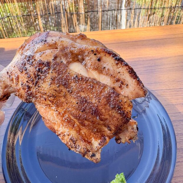 こちらも福智町産の黒炭でじっくり焼いた鶏もも。