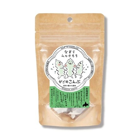 北海道がごめ昆布×北海道銘菓「きびだんご」、ひらひらもっちりこんぶさんのパッケージの「なまらムッチもち がごめこんぶ」は、昆布の豊かな風味。