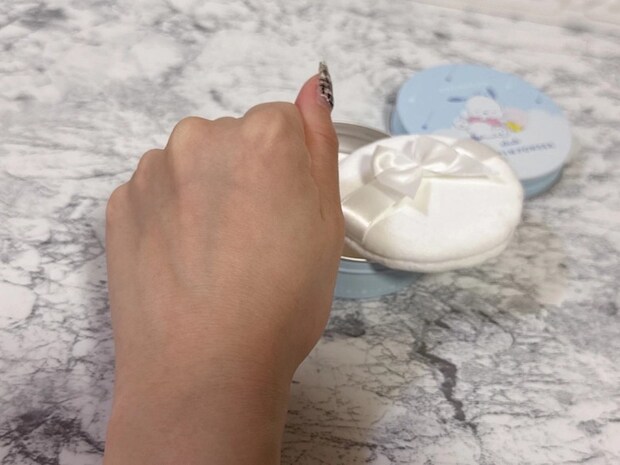 軽いパウダーでつけてるかつけてないかわからないほど自然に肌になじみます。白浮きや粉っぽさも全然ないです。