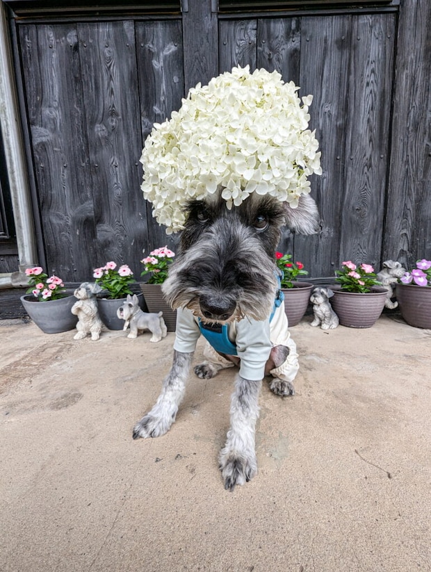紫陽花が綺麗で、けんすけくんの頭にのせてみたんだそう(笑)