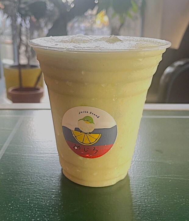 地元のフルーツや野菜をたっぷり使ったジュースが人気。今回は生シャインマスカット×ヨーグルトスムージーを楽しめます♪