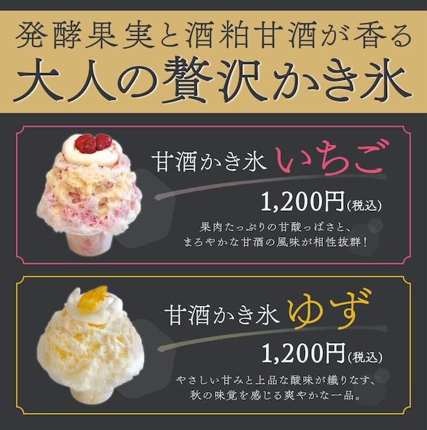 今回は「発酵果実と酒粕甘酒が香る、大人の贅沢かき氷」を提供!