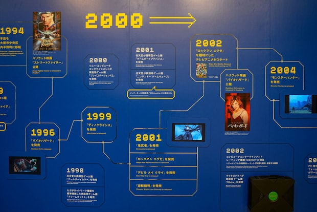 展示のスタートとともに目に入ってくるのが、壮大なカプコンのゲームの歴史!