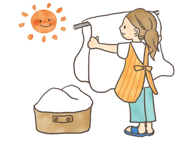 - 患者さんが触れた寝具や衣類は50℃以上の熱めのお湯に10分以上浸してから洗濯する、もしくは乾燥機を20~30分程度かけて死滅させる。